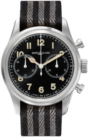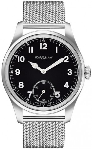 Boîtier de 42 mm = 1 5/8 ", sangle réglable de 7" Poids du boîtier: 110 g Épaisseur du boîtier: 14,55 mm Lunette fixe Fond en acier inoxydable avec une gravure montagnarde unique du Mont Blanc Aiguilles et index luminescents Couronne Push & Pull Boucle ardillon en acier inoxydable Mouvement: Automatique