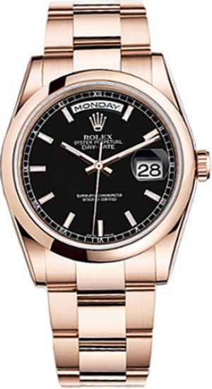Montre Rolex Day-Date 36 cadran noir en or rose 118205