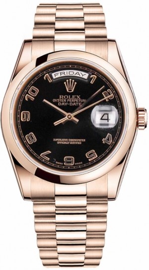 3. Rolex Day-Date 36 Montre pour homme en or rose à cadran noir 118205
