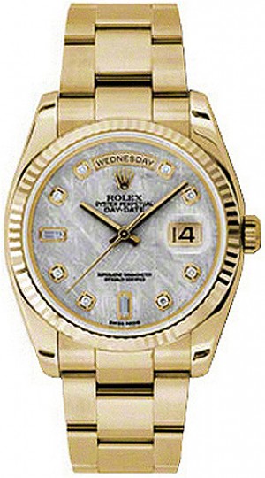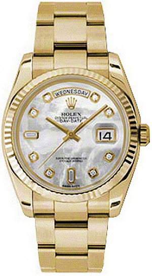 3. Rolex Day-Date 36 Montre en or à lunette cannelée en nacre 118238
