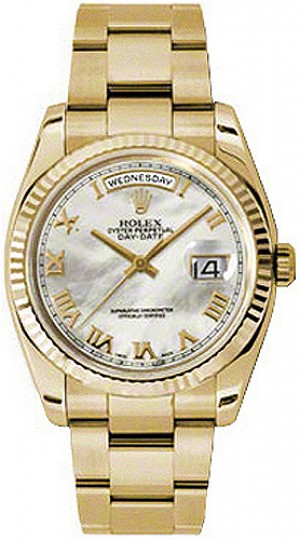 6. Rolex Day-Date 36 Montre en or à chiffres romains en nacre 118238
