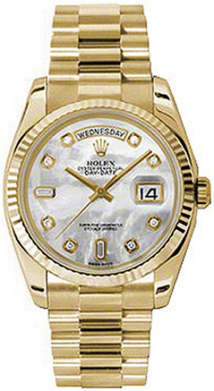 4. Rolex Day-Date 36 Montre en or jaune avec diamants nacrés 118238
