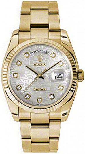 4. Montre Rolex Day-Date 36 Jubilé d'argent Cadran en diamant Montre en or 118238
