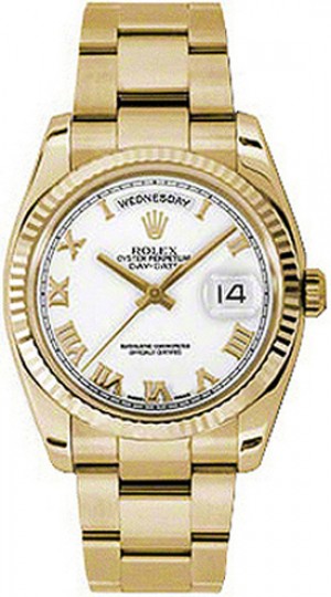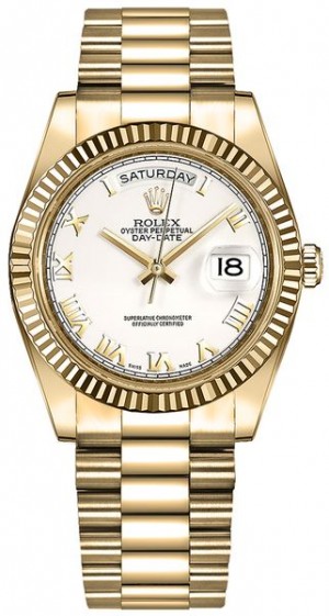 6. Rolex Day-Date 36 Montre en or à cadran blanc à chiffres romains 118238