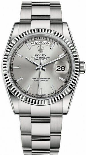 Montre Rolex Day-Date 36 cadran argent massif en or blanc 18 carats 118239