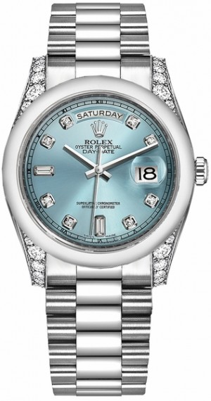 Rolex Day-Date 36 Montre en platine à diamants bleu glacier 118296