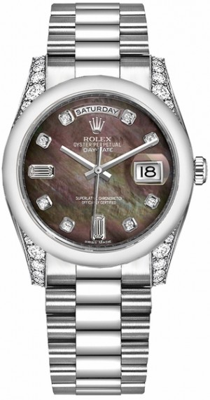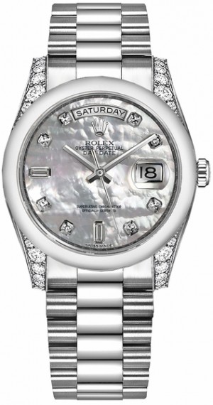 9. Rolex Day-Date 36 Montre en platine avec cadran en nacre et diamants 118296