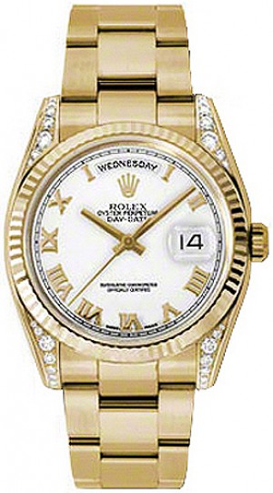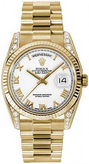 7. Rolex Day-Date 36 Montre en or à cadran blanc à chiffres romains 118338