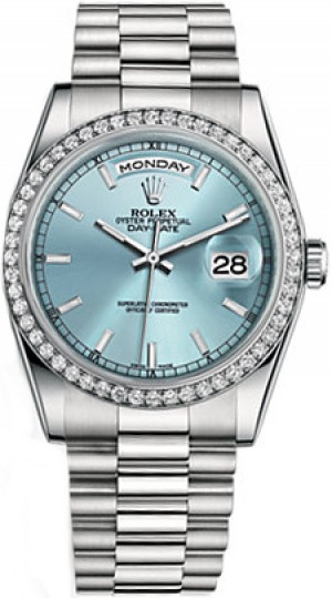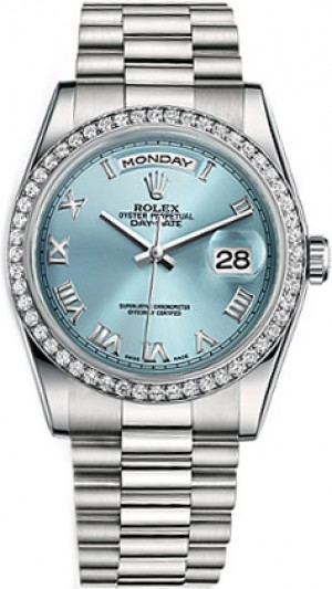 4. Rolex Day-Date 36 Diamond Ice Blue Watch 118346