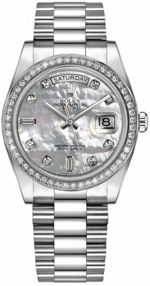 10. Rolex Day-Date 36 Montre en platine avec diamants et nacre 118346