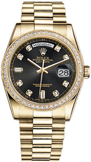 8. Rolex Day-Date 36 Montre en or à cadran noir 118348