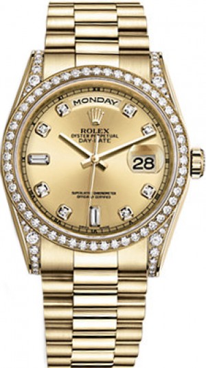 6. Montre Rolex Day-Date 36 Champagne Diamant Or 118388
