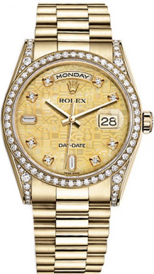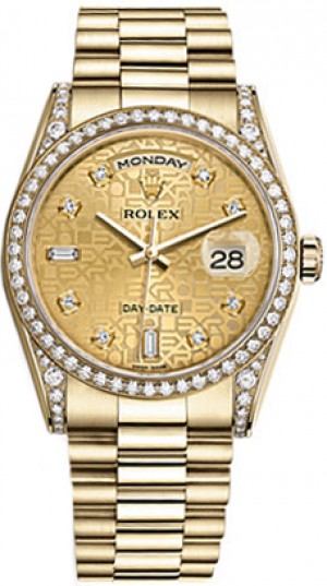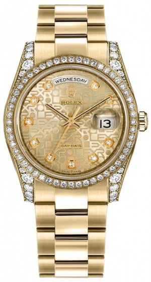 Montre Rolex Day-Date 36 Champagne Jubilee Diamond Gold Watch 118388