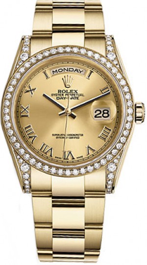 10. Montre Rolex Day-Date 36 Champagne en or à chiffres romains 118388