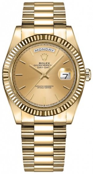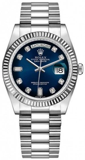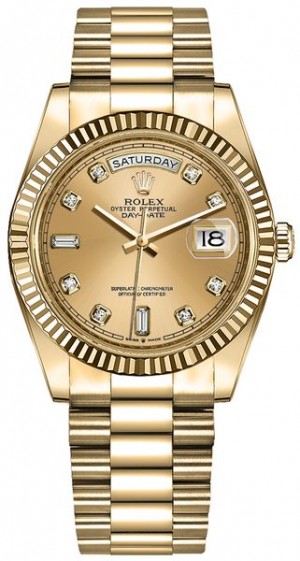 8. Montre Rolex Day-Date 36 à lunette cannelée et bracelet présidentiel pour femmes 128238
