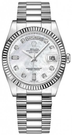 10. Montre Rolex Day-Date 36 en or blanc et nacre pour femmes 128239