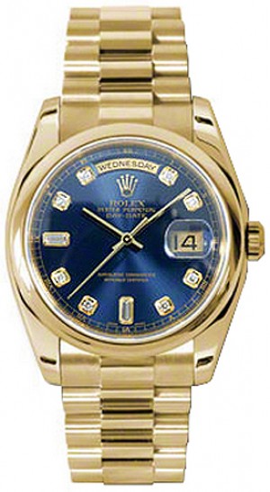 1. Rolex Day-Date 36 Montre en or avec cadran en diamant bleu 118208