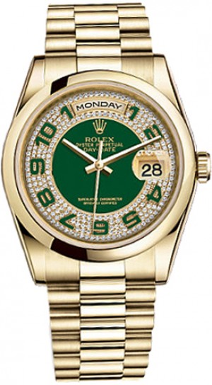 1. Rolex Day-Date 36 Montre en or à cadran vert 118208